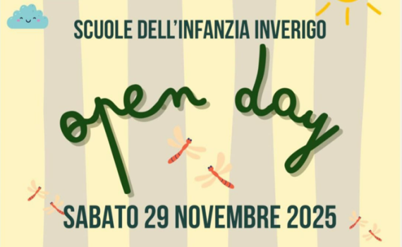 SABATO 29 NOVEMBRE 2025OPEN DAY SCUOLE INFANZIA INVERIGO INFANZIA “SACRO CUORE”: dalle 8.30 alle 10.00 SEZIONE PRIMAVERA “ARCOBALENO” E INFANZIA “MONS. POZZOLI”: dalle 10.30 alle 12.30 LOCANDINA