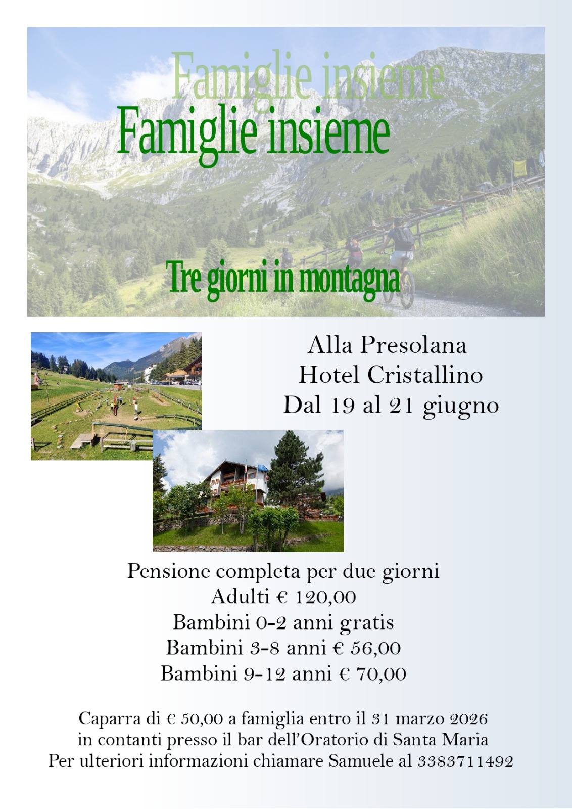 Caparra di € 50,00 a famiglia entro il 31 marzo 2026